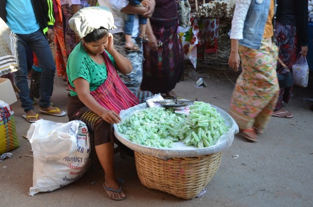 A candy vendor in the markets of Nyaung Shwe, the gateway to Inle Lake