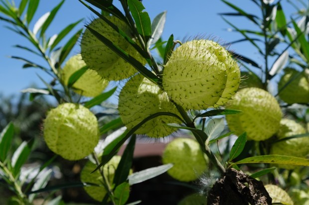 An unseen goat bleats plaintively from the back of a small shed. In the adjacent yard, Bama points out a familiar plant he once saw on Instagram. This is Gomphocarpus fruticosus, a unique-looking and deadly poisonous species whose bulbous, spiky seed pods remind me of inflated pufferfish. Cisadon’s nascent adventure tourism industry has led to the creation of several warung (informal eateries) catering to hungry trekkers and mountain bikers. At the center of the village lies two fishponds – empang in Sundanese. Both have rustic open-air pavilions where visitors can sit while enjoying a cup of coffee or tea, or even a plate of instant noodles.