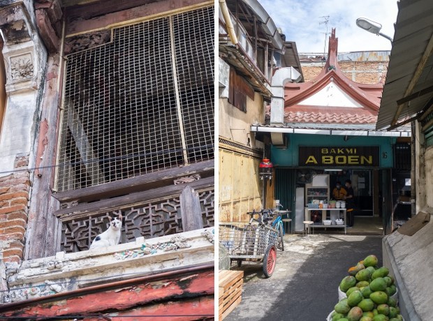 A furry neighborhood resident; Bakmi A Boen is hidden down a back alley