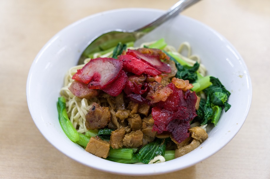 A bowl of bakmi babi spesial (special pork noodles) for breakfast