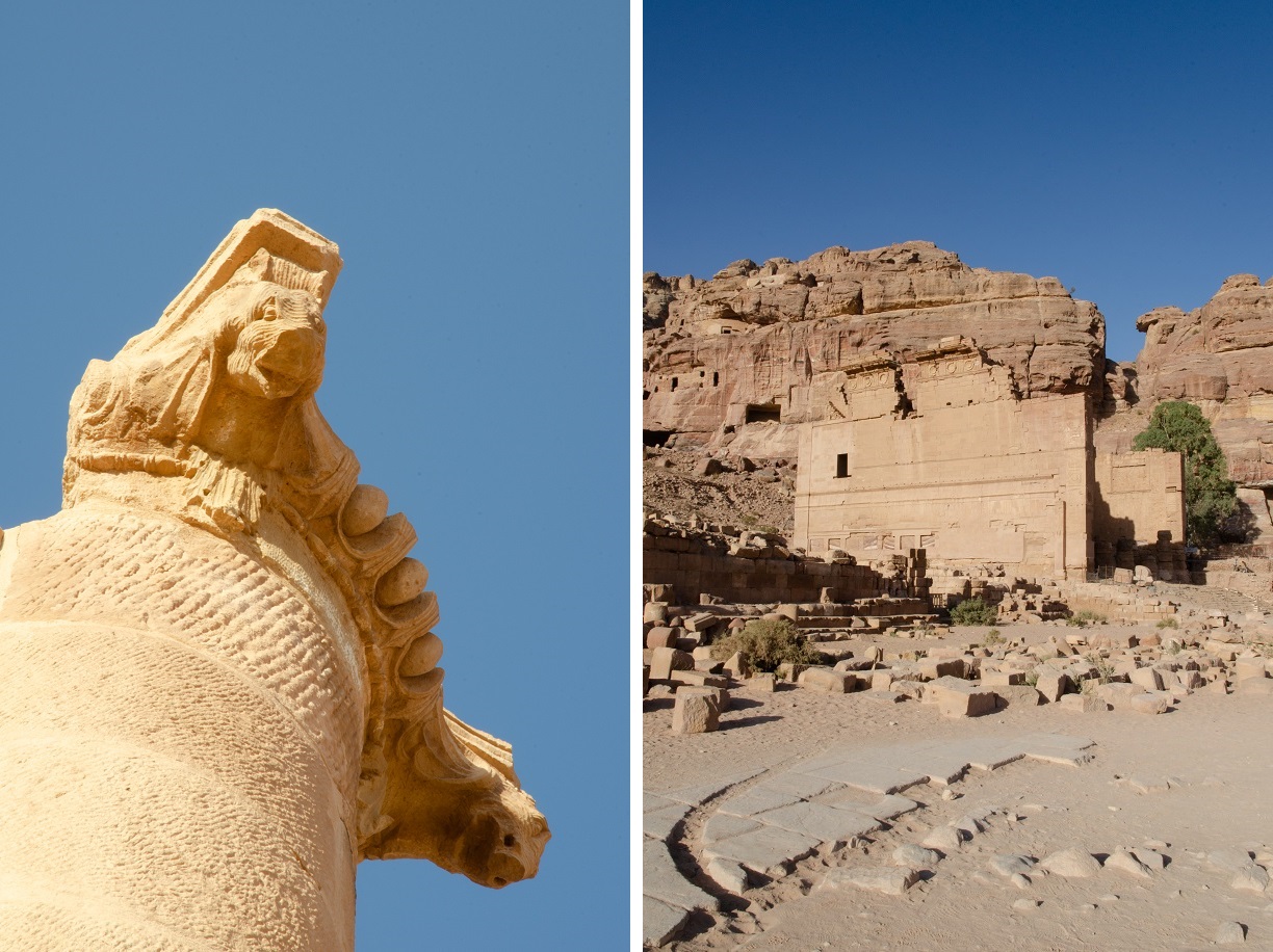 Broken elephant capitals at the Great Temple; the 1st-century Qasr al-Bint