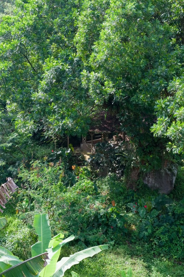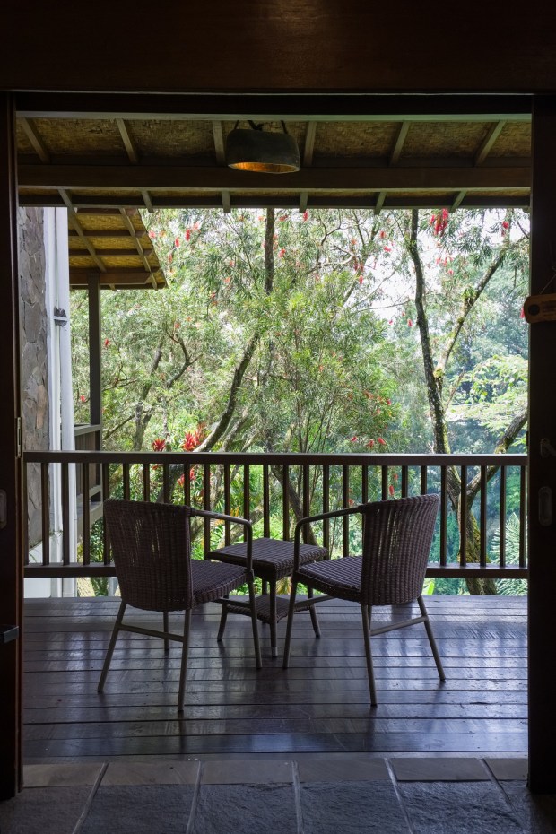 It’s possible to spend an entire day at Novus Giri without leaving the resort. There are tennis courts and a pool to splash out in, a small spa (though it was closed when we were there), and kids can make a beeline for the “rabbit village” a little further downhill, where the well-fed resident critters are sometimes let out of their hutches into grassy enclosures. On a stone-paved terrace at the rabbit village, we take in the views over the adjoining forested gully. Wild-growing tropical flowers add bright flecks of color to the green canvas, and I spot an abandoned pavilion between the trees on the far side of a babbling brook that we cannot see, though the soothing sound of water running over natural stones is clearly audible.