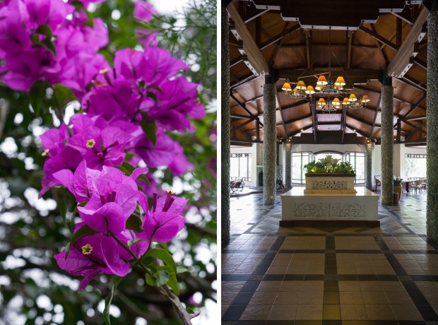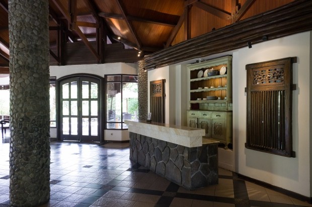 My companion recalls traveling the same road during his childhood when it was cloaked in fog, and again while skies were overcast on a subsequent visit years later. We are lucky to see Puncak beneath the bright midday sun. Once we traverse the pass, the tea plantations give way to a patchwork of vegetable fields. The four-star Novus Giri occupies the high ground between two steep-sided gullies in Cipanas, which takes its name (literally “Hot Water”) from the sulfur-rich hot springs found at the foot of Mount Gede. Our hotel of choice has been around since the early 90s; the cozy reception pavilion reminds me of a national park lodge in North America, with columns clad in well-worn river stones and a high wooden ceiling supported by a web of exposed beams and rafters.