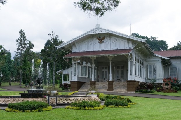 Slowly, with bellies dangerously full, the two of us navigate a broken pavement strewn with parked motorbikes and wares spilling out from several stores, making our way past the tumbledown market to reach Cipanas Presidential Palace. Easily the oldest of six such official residences dotting the islands of Java and Bali, the main building is undeniably beautiful: its extended front porch, framed by slender columns and delicately carved screens, wouldn’t look out of place in Europe or even the US.