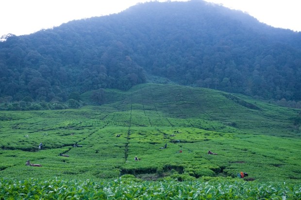 Never mind the fact that Good Friday is a public holiday across Indonesia: even before 7 a.m., the tea-pickers are already at work in the fields. From the trail we hear the collective clip-clip-clip of their shearers, interspersed with the soft, melodic tones of Sundanese. West Java’s indigenous language flows gently like the gurgling creeks and streams that run through these well-watered highlands. Bama, being a fluent Sundanese speaker, walks on ahead. “Punten,” he says politely as we encounter groups of local villagers resting in the shade. I learn that the word simply means “excuse me” in formal Sundanese. The tea-pickers respond with “mangga” (please [pass]).