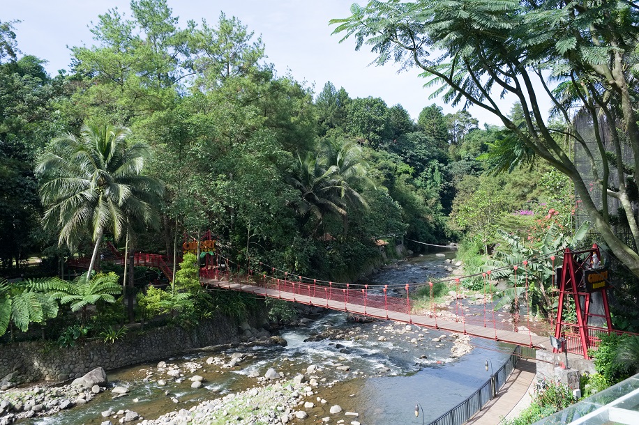 It’s just before 9 a.m. when Bama pulls into the near-empty parking lot at Cimory Riverside — a restaurant and attraction run by a local dairy company — where we pick a table on the terrace overlooking the Ciliwung. Looking out at the clean, clear water running over the stony riverbed, it’s hard to believe that this same creek becomes a trash-filled open sewer by the time it reaches Jakarta. On the opposite bank, across a red suspension bridge, lies the starting point of a forest boardwalk. Already I can feel my muscles relax.