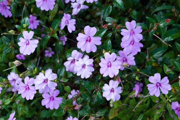 Our destination is a small lake overlooked by a gazebo, and we’re in luck. The stars have aligned to create the ideal shooting conditions. I marvel at the water’s surface — flat like glass and smooth like a mirror. Sunlight drenches the entire scene in vivid color; the blue skies above our heads are streaked with cirrus clouds and small puffs of vapor. Pangrango peeks out over the manicured lawns. Barely half an hour later, low clouds roll in and envelop the landscape, completely changing its appearance. Here, about 1,360 meters (4,460 feet) above sea level, the air is cool but unceasingly damp. The moisture clings to our skin. Bama and I wander through a fern garden, examine the mosses growing at the base of a tree, and admire flower beds planted with a cultivar of the orange day-lily (Hemerocallis fulva). Nearby, there’s a pair of cottage-like guest houses that wouldn’t look out of place in the mountains of Europe.