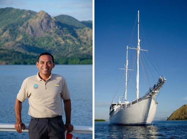 I also spent some time talking to Ferdinandus, the cheerful cruise officer from Ruteng, a highland town about four hours up the road from Labuan Bajo. While crew members prepared for a three-course lunch on the teakwood foredeck, he pointed out the humped shape of Pulau Kukusan, which shares its name with the small, jungled isle in front of the Ayana resort. Kukusan, I learned, are the conical woven bamboo baskets traditionally used to steam rice in Indonesia. “These islands were given their names by fishermen like the Bugis and Bajau,” Ferdinandus added. “We Manggarai prefer growing crops as we are people of the mountains.”
