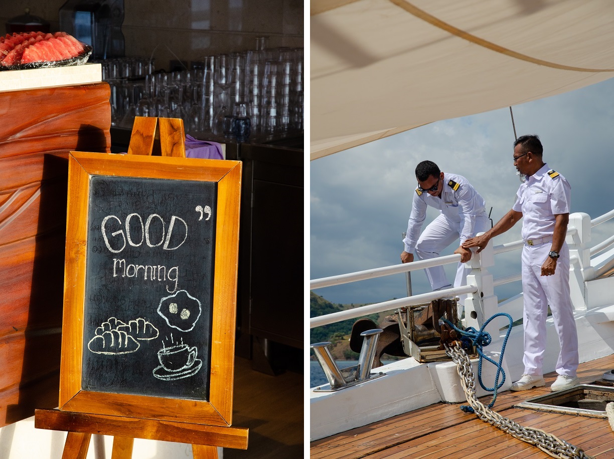 I wasn’t traveling alone. Joining me aboard the ship was Tama, one of our in-house photographers, and three Ayana employees including Beauty, a Jakarta transplant based full-time at the resort. The other two had flown in from the group’s main office in Bali: a Taiwanese marketing and events person by the name of Caroline, and graphic designer Yudie, who’d brought along a drone to capture aerial stills and video footage of the vessel. We all happened to be of similar ages and quickly bonded through relaxed conversations and communal meals.