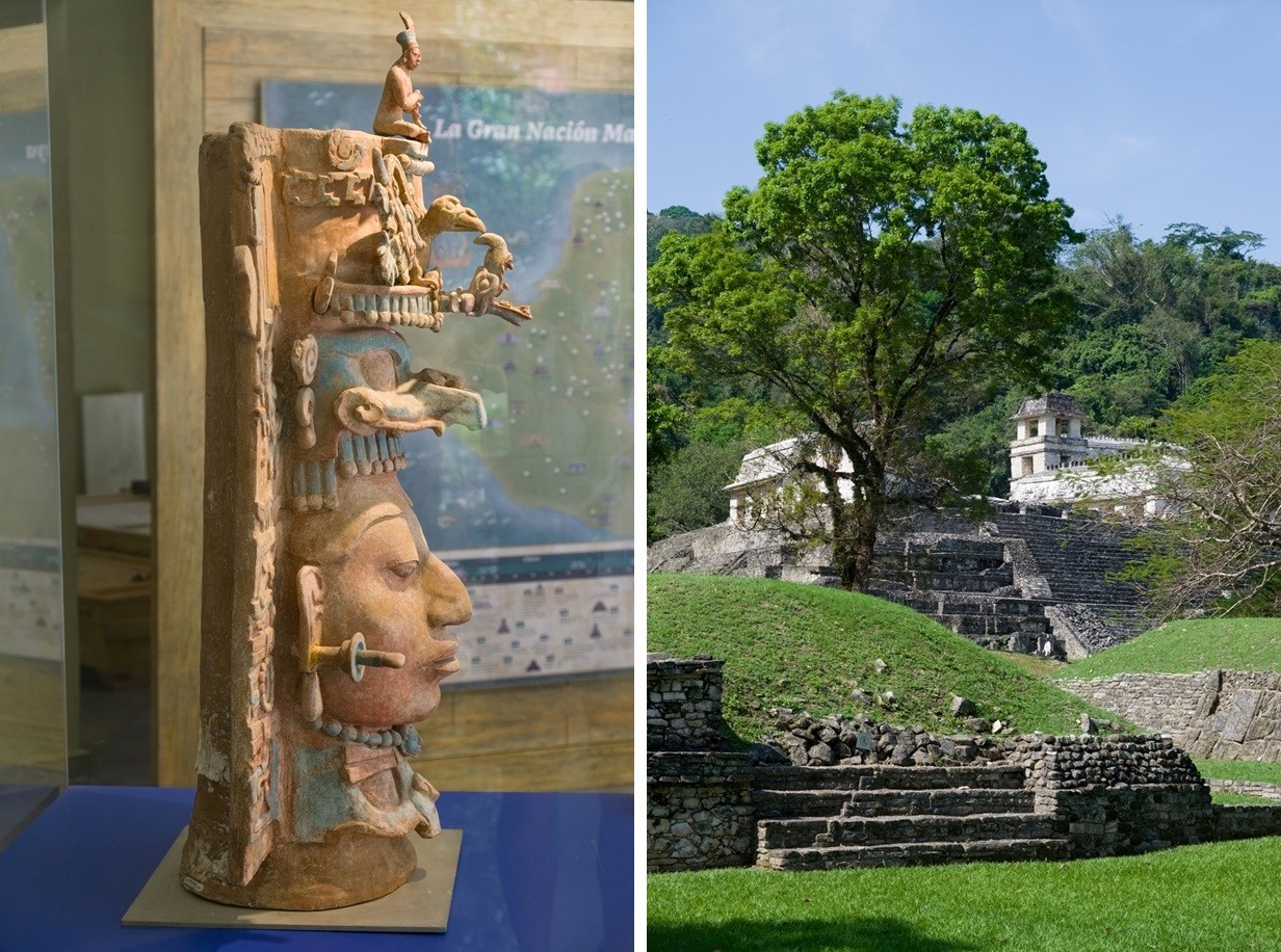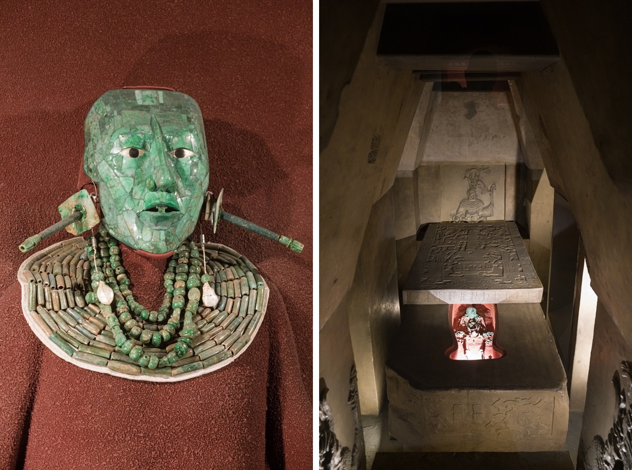 Pakal the Great’s death mask and a replica of his burial chamber, both in Mexico City