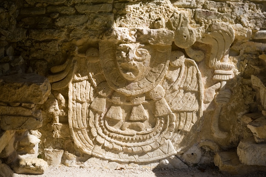 The sarcophagus lid, a solid tombstone weighing seven tons, bore an exceptionally carved bas-relief imagining the great king’s journey to the afterlife. Pakal was laid to rest with a funerary mask and an assortment of necklaces and bracelets, all in precious green jade. These are now shown at Mexico City’s National Museum of Anthropology in a subterranean gallery featuring a reconstruction of the burial chamber, complete with a corbel-arch ceiling and stucco reliefs on the walls.